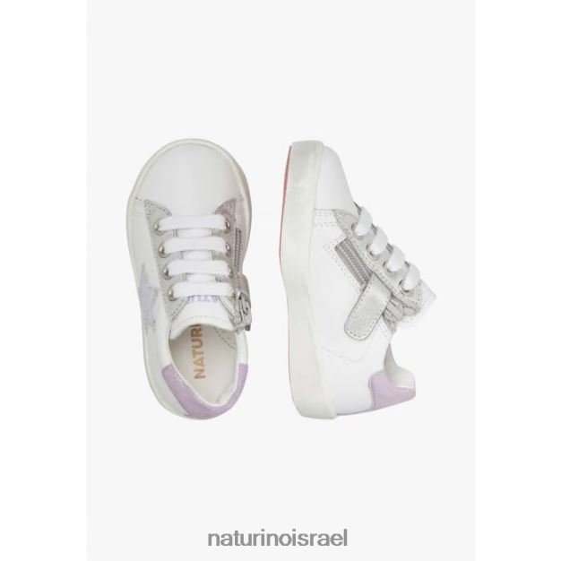 Naturino נעלי ספורט מעור עם טלאי כוכבים אנני זיפ 0NR062392 ילדים לבן-לילך