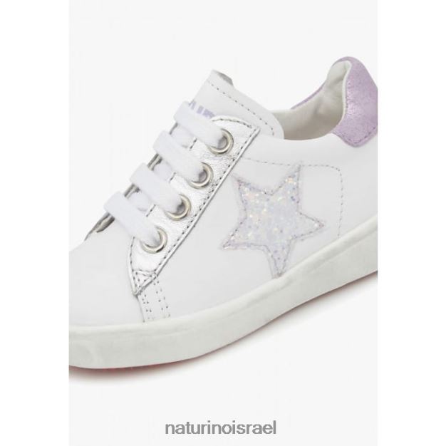 ראשי| הַנעָלָה| נעלי ספורט| Naturino נעלי ספורט מעור עם טלאי כוכבים אנני זיפ 0NR062392 ילדים לבן-לילך