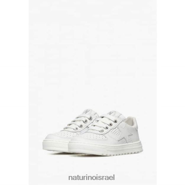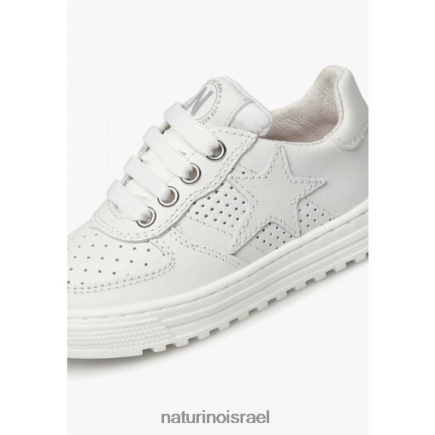 Naturino סניקרס מעור מחורר עם כוכב עם רוכסן הס zip. 0NR062363 ילדים לבן